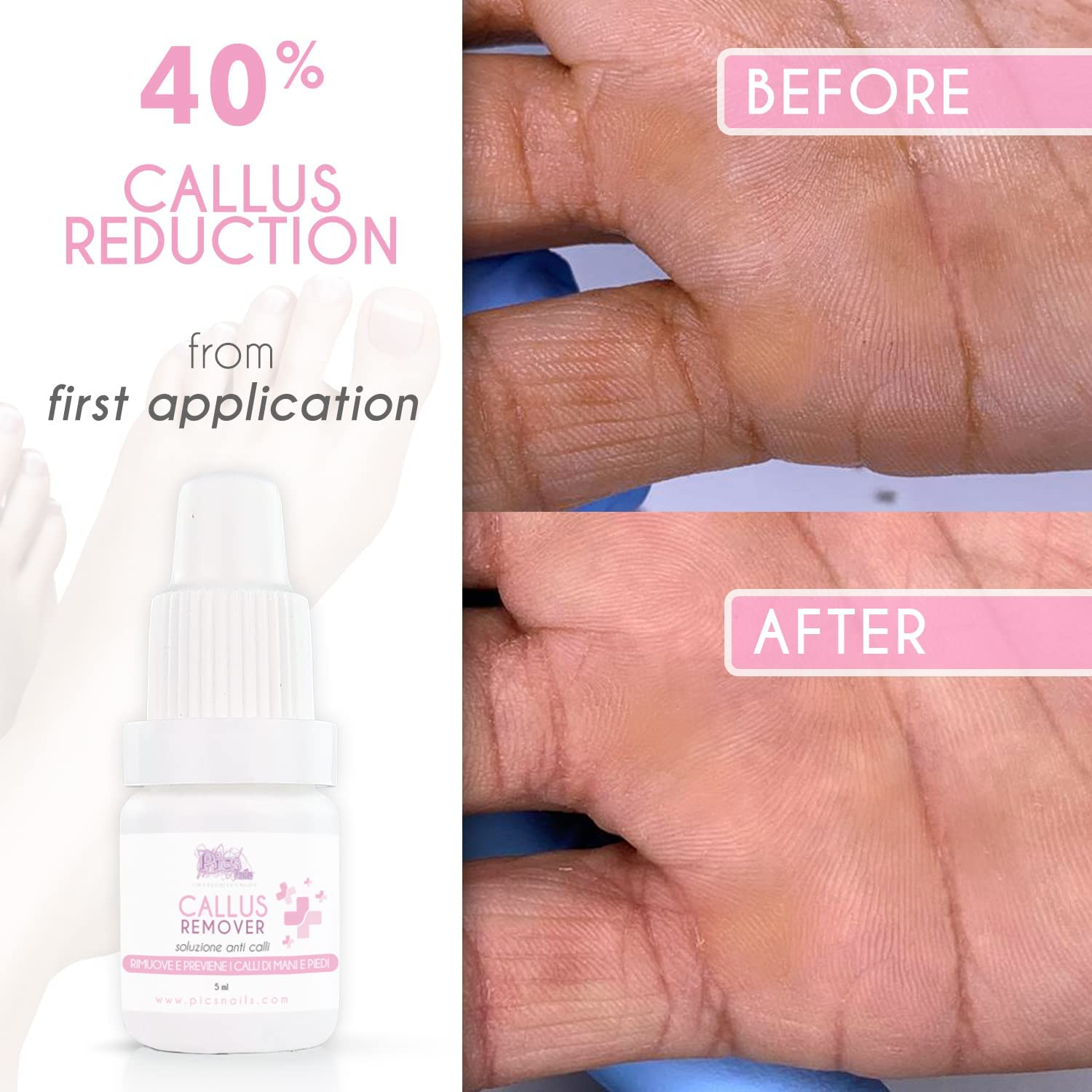 - POCHE GOCCE: Bastano 2-3 gocce di liquido Rimuovi Calli sopra la zona da trattare per rimuovere la maggior parte dei calli difficili
