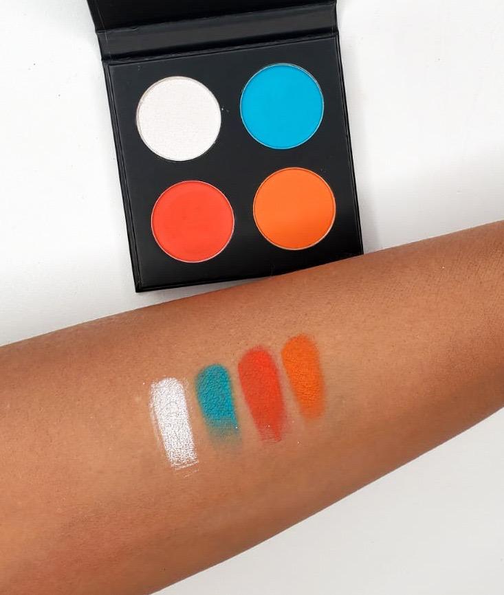 These 4 eye-catching and daring colors will complete your day time or night time look. Fun colors that you can mix and match. this amazing palette contains three mattes and on bright shimmery eyeshadow.